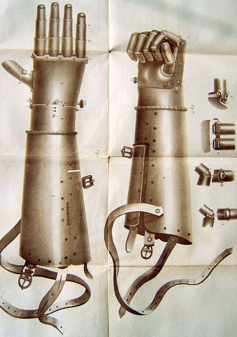 The Huguenot captain François de la Noue (1531 – 1591) was known as Bras-de-Fer (Arm-of-Iron) due to his prosthetic arm. His arm had needed to be amputated after being shattered by a bullet during the siege of Fontenay in 1570, so a mechanic from La Rochelle created an iron arm for him, which included a hook designed to hold his horse´s reins. De la Noue could therefore continue his military career.